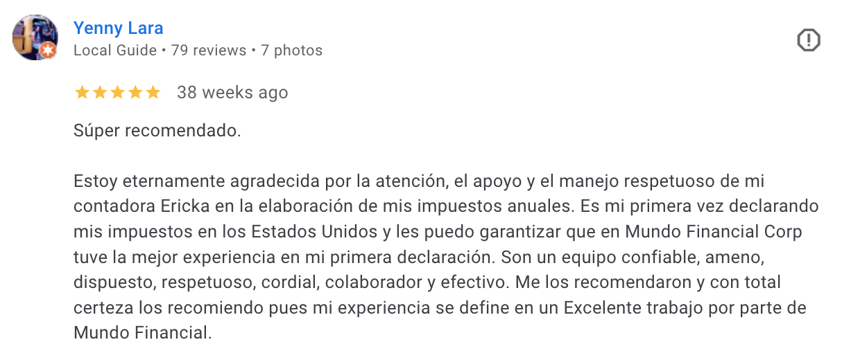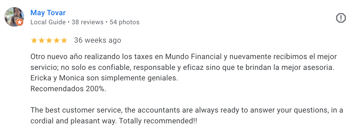 En Mundo Financial Corp, más de 25 años de trayectoria se combinan con una dedicación incansable al servicio al cliente. Nos especializamos en ofrecer soluciones especializadas en impuestos, contabilidad y asesoría financiera, con un enfoque personalizado que atiende las necesidades únicas de cada cliente. Nuestra misión es ser un socio estratégico para pequeños negocios, guiándolos con profesionalismo y compromiso hacia un futuro financiero más sólido y próspero.